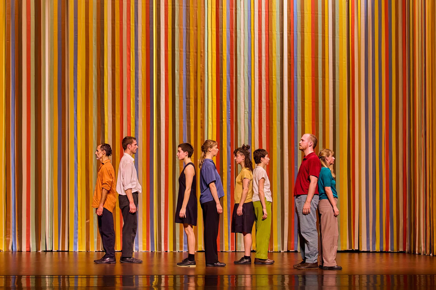 En 2025, huit danseurs, huit êtres humains jouent de tensions pour essayer de dégager ce qui contribue, de la complexité́ à l’indifférence, à nous faire croire que tel est le destin du monde, un monde où la réussite de quelques-uns fait face à « l’impuissance » de plusieurs milliards d’autres, et qu’en effet, malgré́ les bons points distribués aux bons élèves par la finance internationale, épuisant les luttes et ruinant les populations, les applaudissements ne se mangent pas. » Maguy Marin